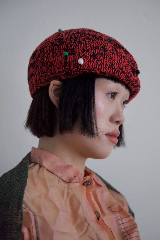 Debris Beaded Hand Knit Cotton Beret Cap (4 colorways)