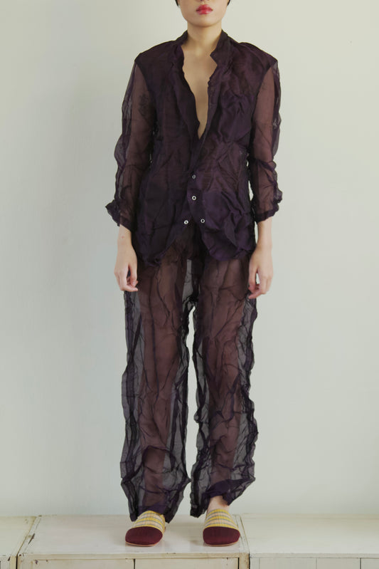 Crumpled Thai Silk Unisex Snap Adjustable Lounge Suit (3 colorways)