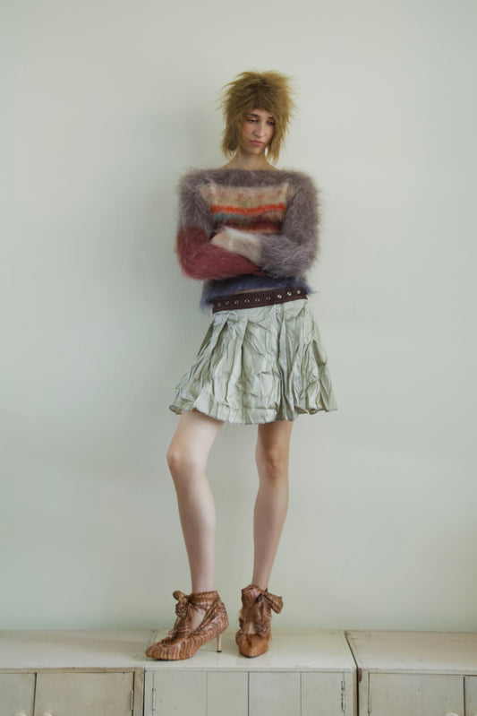 Blur Brushed Mohair Pinafore Raw Thai Silk Babydoll Top (metallic mauve)