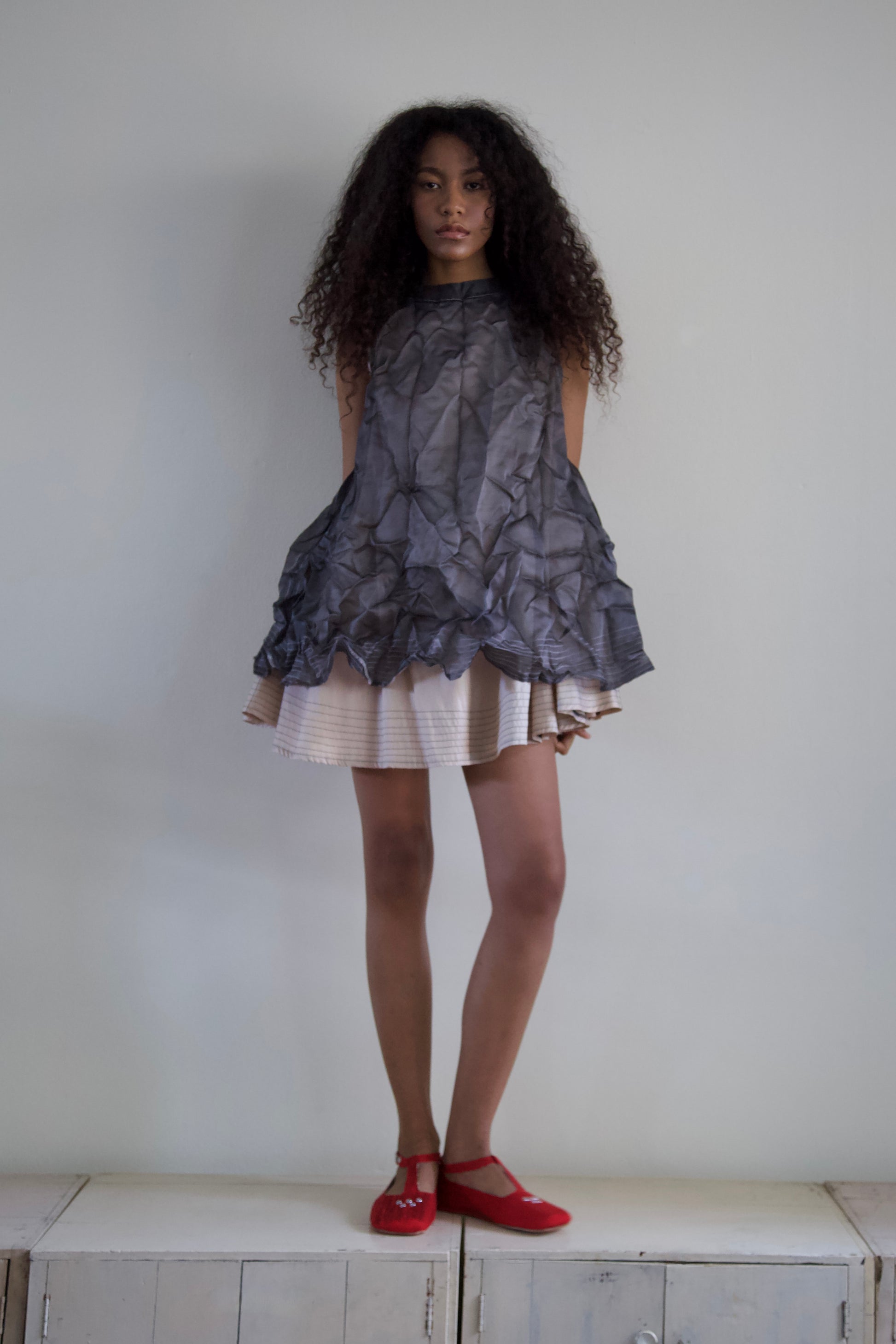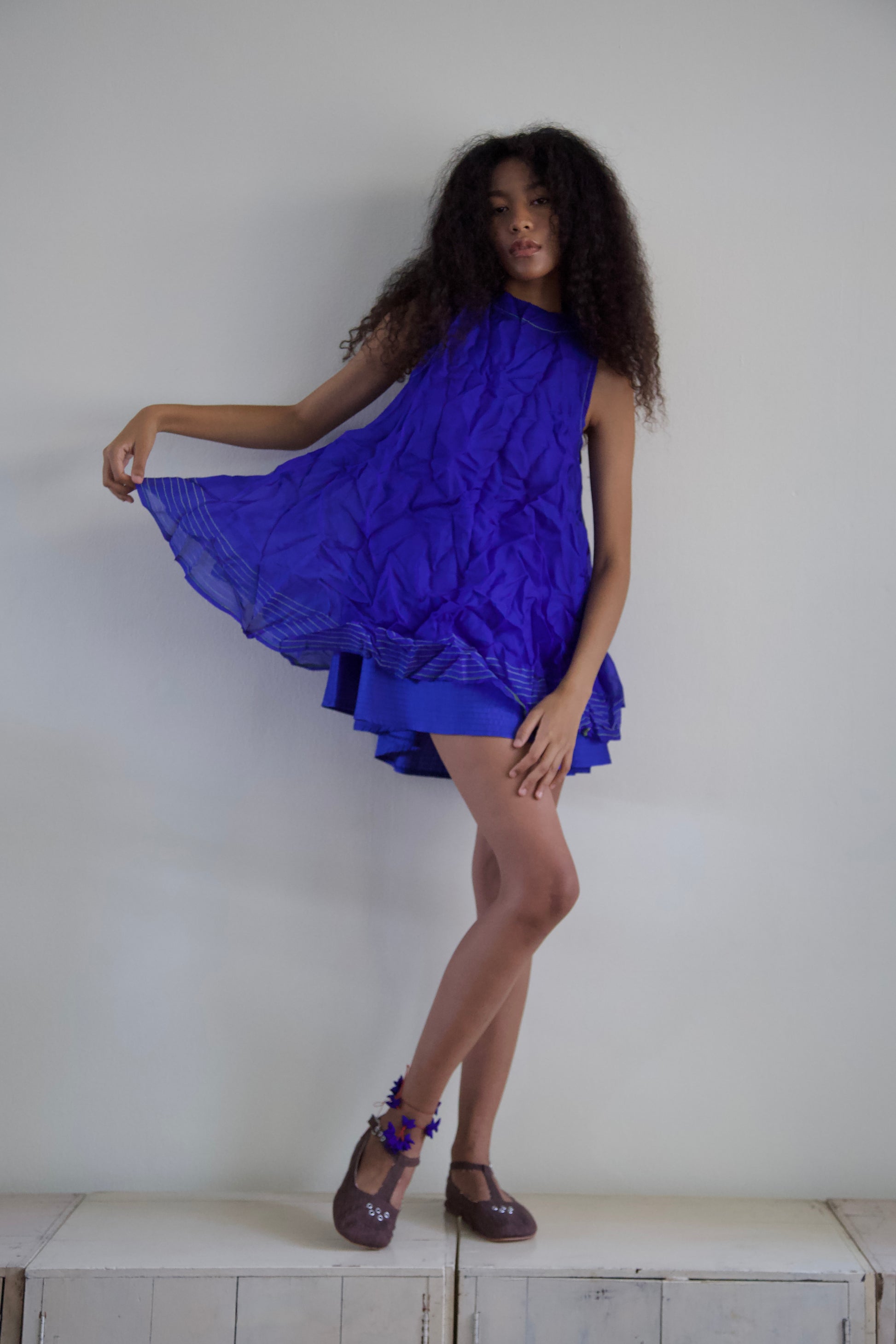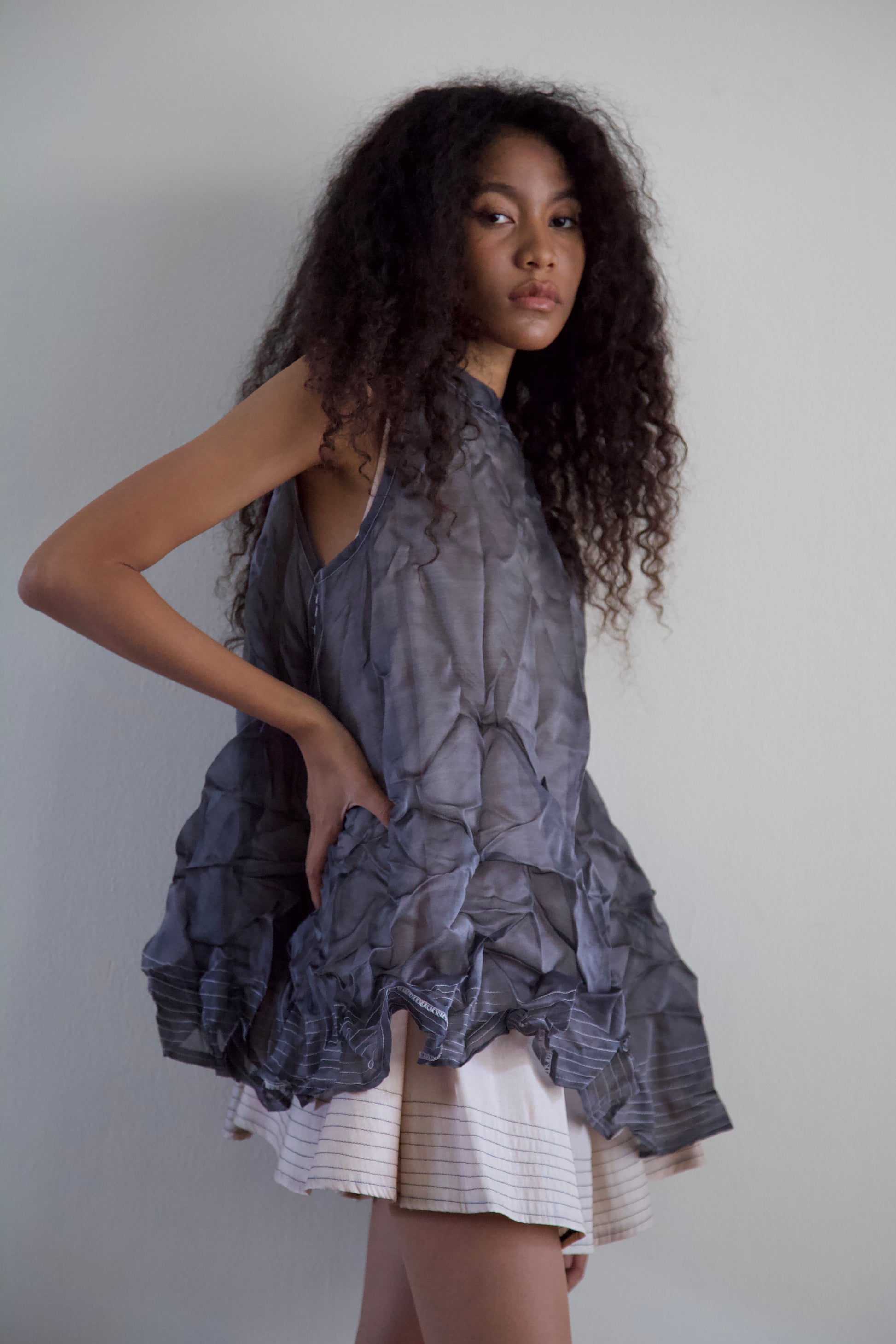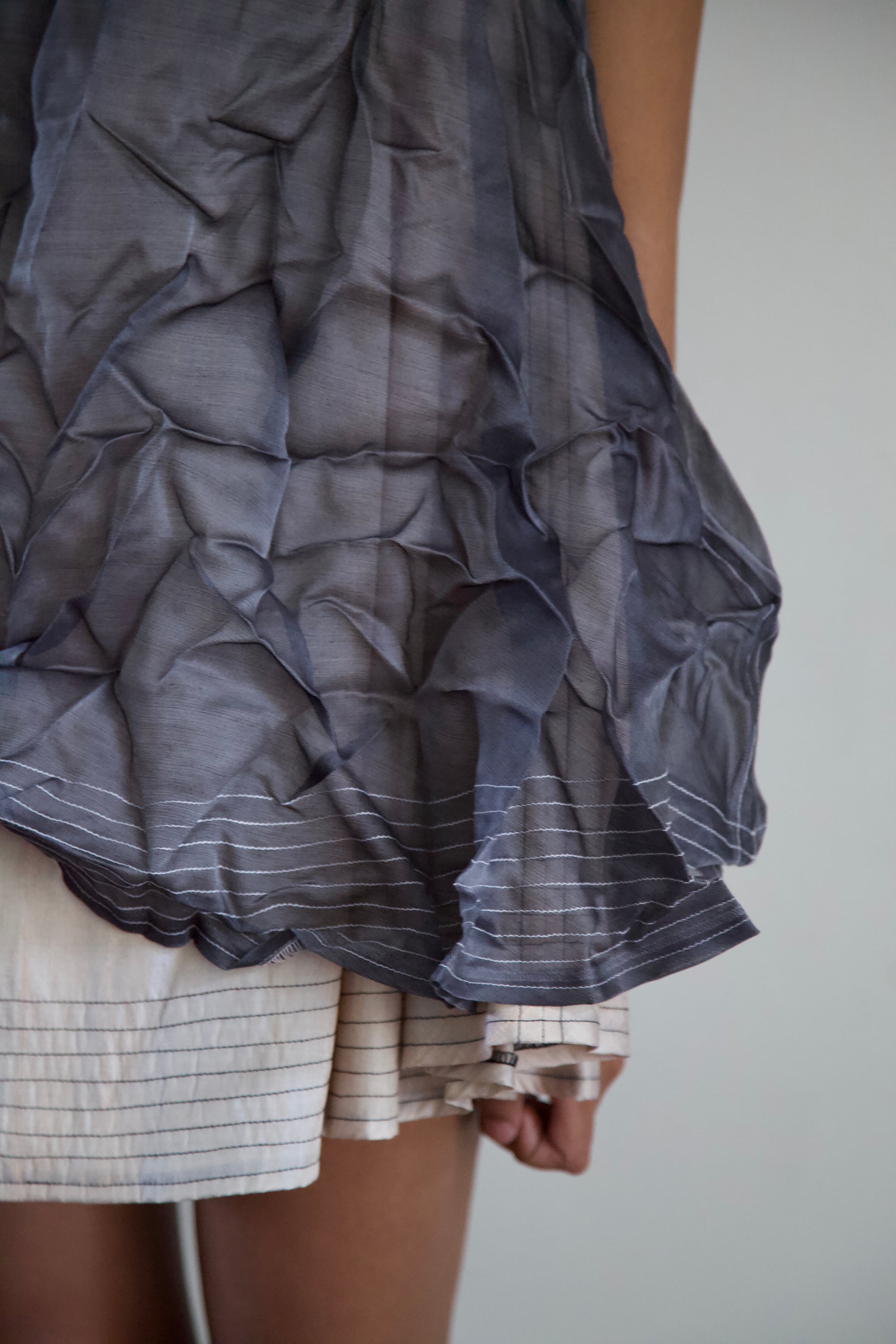'Opacity' Crumpled Glass Silk + Handwoven Thai Silk Two Piece Tent Dress Set (7 colorways)