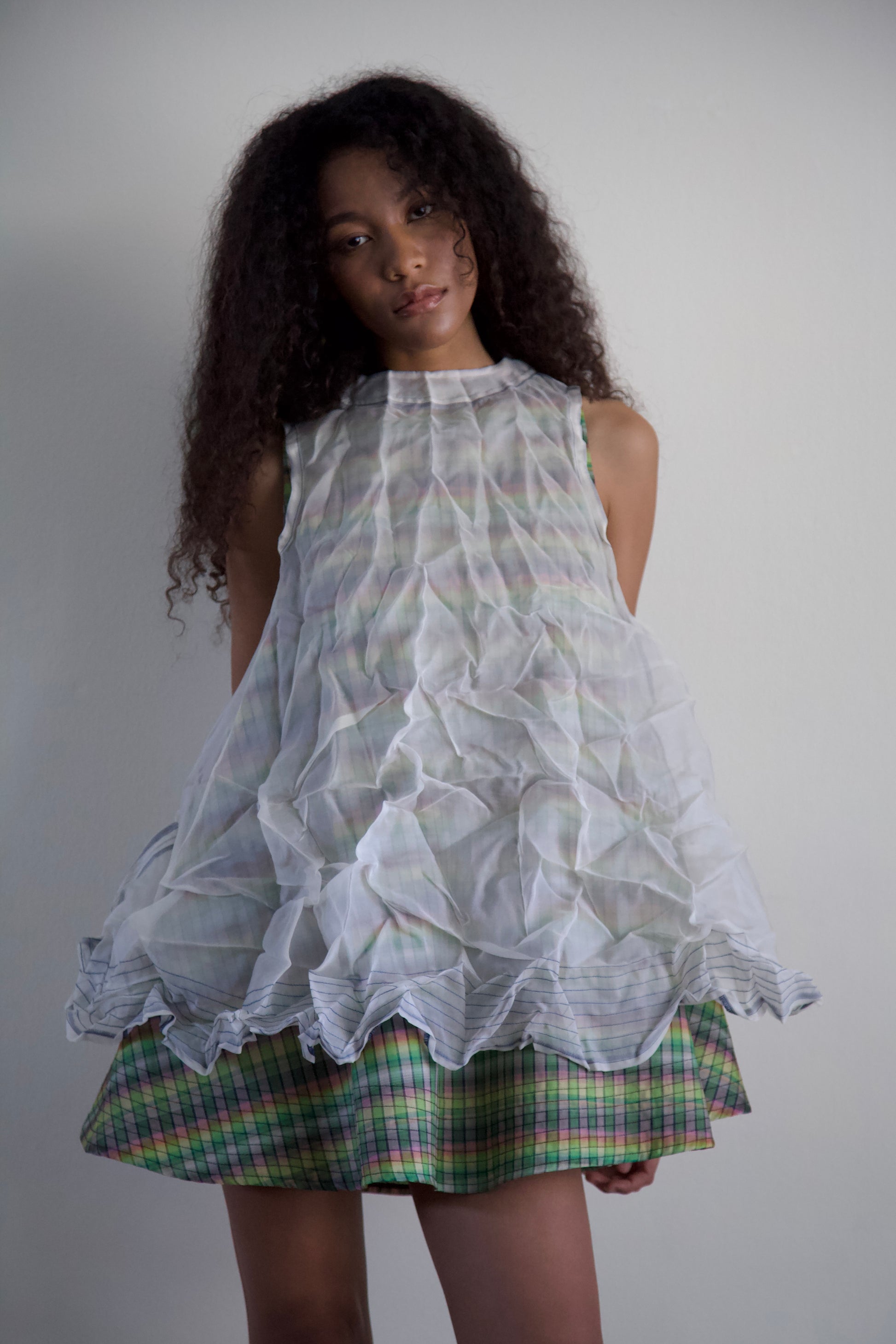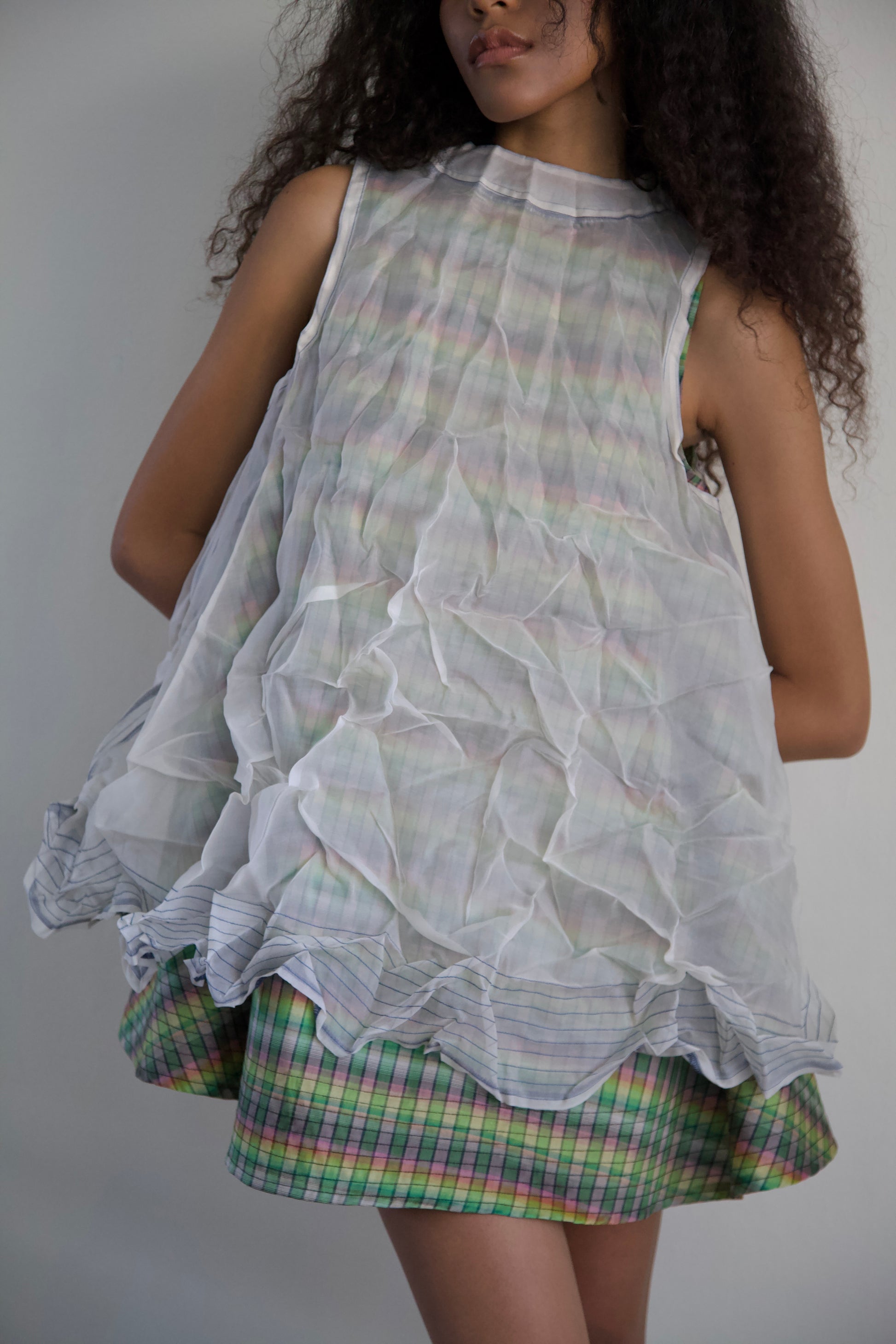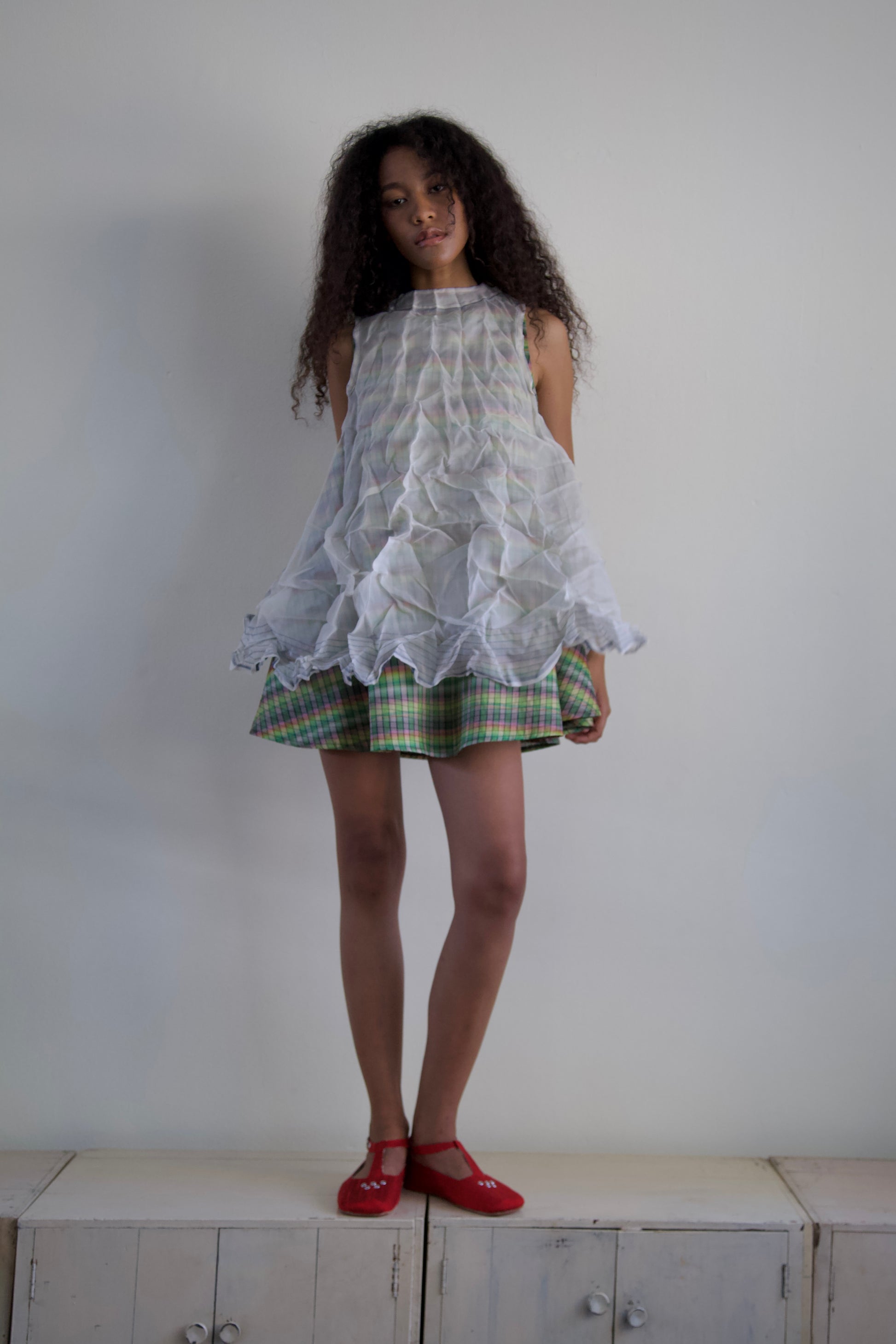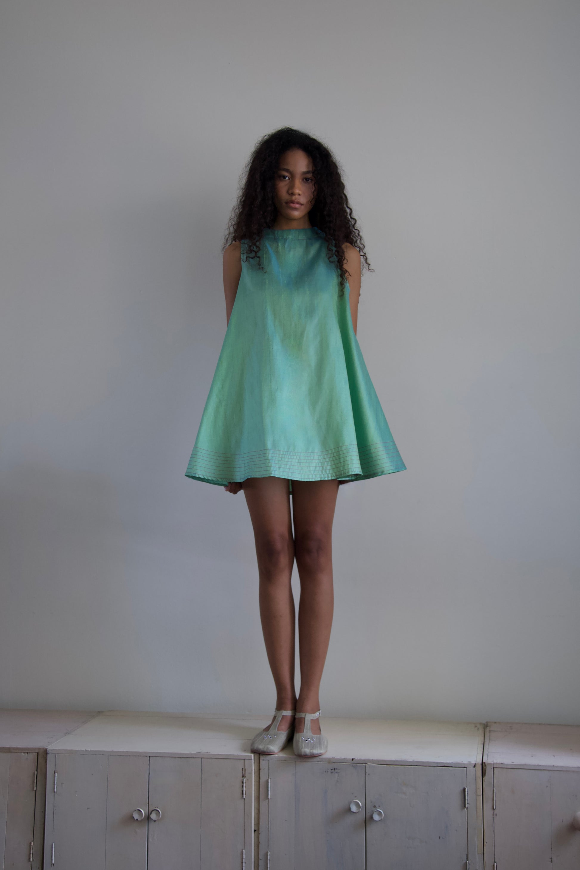 'Opacity' Crumpled Glass Silk + Handwoven Thai Silk Two Piece Tent Dress Set (7 colorways)